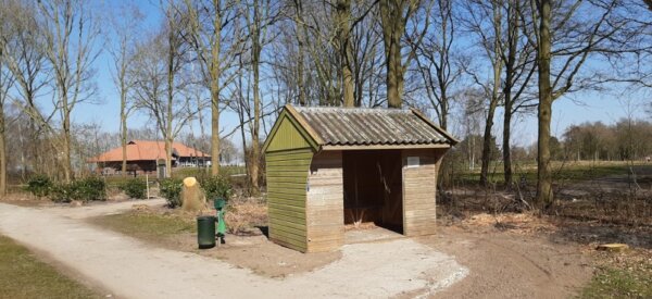 3- Alweer enkele jaren geleden is er een trolleyafdak gemaakt bij het clubhuis. Deze is te laag en het dakje voorzien van singels. Het dak wordt verhoogd en de singels worden vervangen door stalen dakplaten.